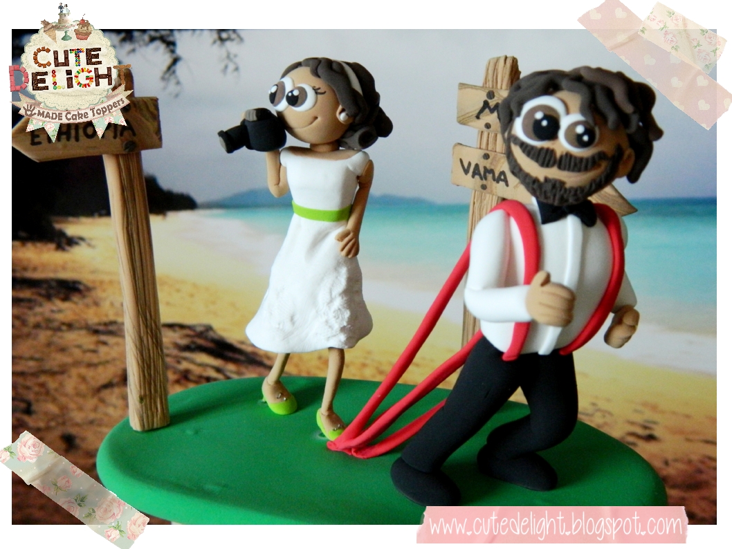 | Cute Delight - Custom Handmade Wedding Cake Topper - The Bride likes hollydays and Plane traveling